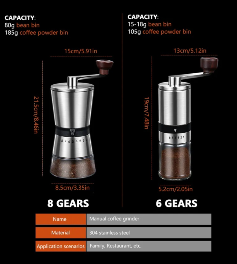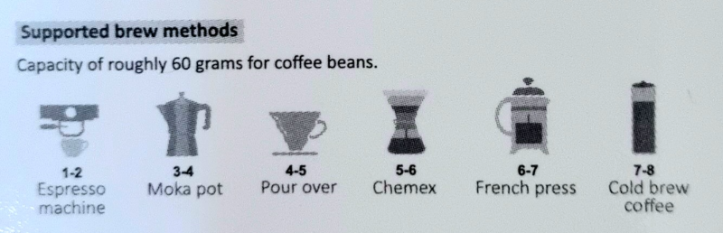 80g의 원두를 8단계의 분쇄 크기로 갈 수 있다고 합니다.