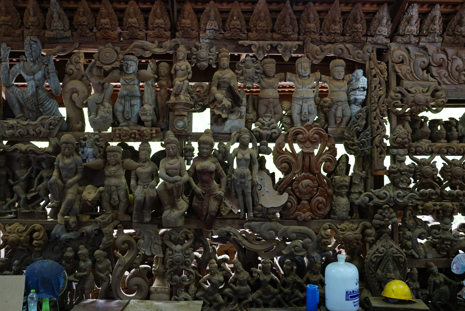 입장을 기다리면 입구에서 바라본 진리의 성전은 먼 거리임에도 그 웅장함 느껴집니다. 입장하면 이 성전은 아직 건축 중에 있어 작업장에서는 지금도 계속에서 조형물을 나무로 깎아 만들고 있습니다.