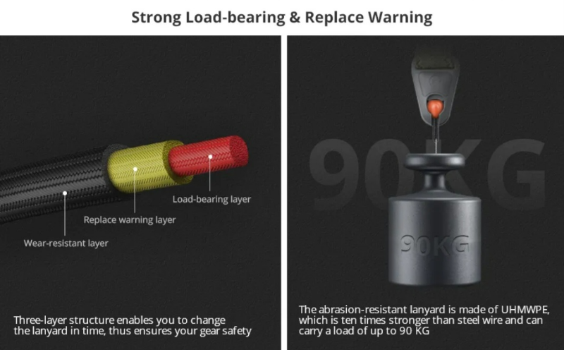 이 Dyeema는 방탄복 및 방탄모 재질로도 사용한다고 하니, 정말 이 재질을 스트랩에 썼다면 하중 신뢰성은 의심할 필요는 없겠네요.