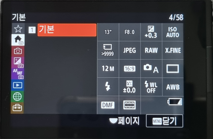 먼 자 사진으로 레버를 변경한 후 역시 'MENU'를 눌러 기본 화면으로 들어갑니다.