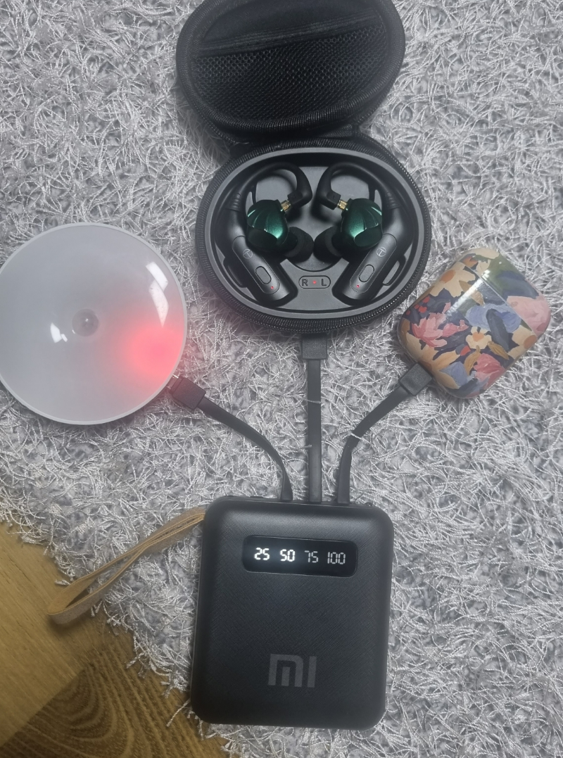 우선 완충 후 3개의 기기를 연결했는데 충전은 잘 됩니다. 그런데 2개를 꼽으니 잔여표시창이 벌써 50프로라고 뜨네요 ㅎㅎㅎ. 빼고 다시 다른 기기에 꼽으면 100프로가 다시 되기도 합니다.
