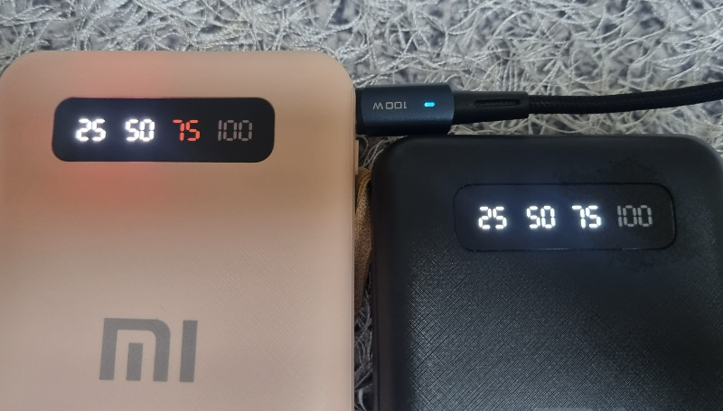 전반적으로 무난하며 사용편리성도 갖춘 보조배터리인데요. 다만 아래사진처럼 보조배터리 충전을 시키면 용량표시창이 두 개의 배터리가 약간의 차이가 있습니다.