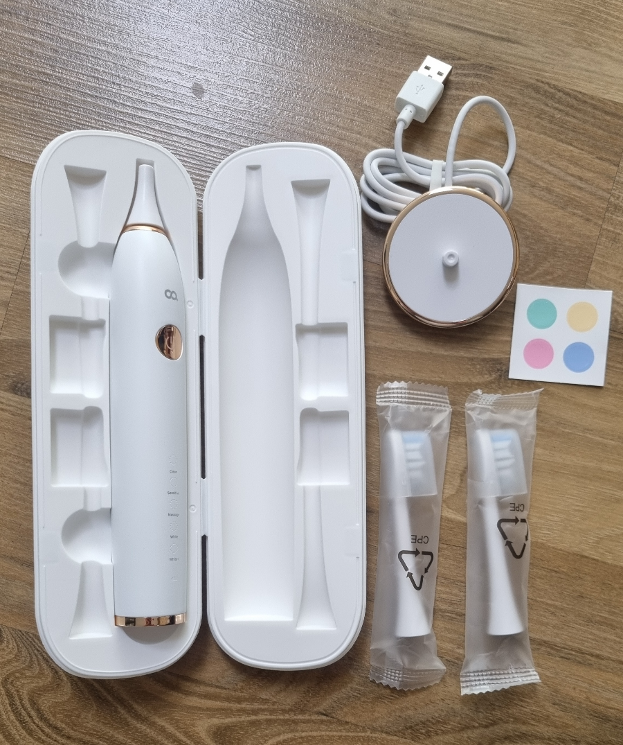 오아는 칫솔 2개, 칫솔대, 충전단자, 휴대용 케이스로 구성되어 필립스보다는 구성이 조금 고급스럽게 보입니다.