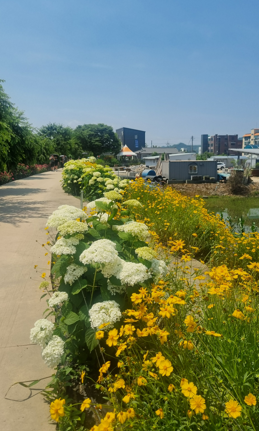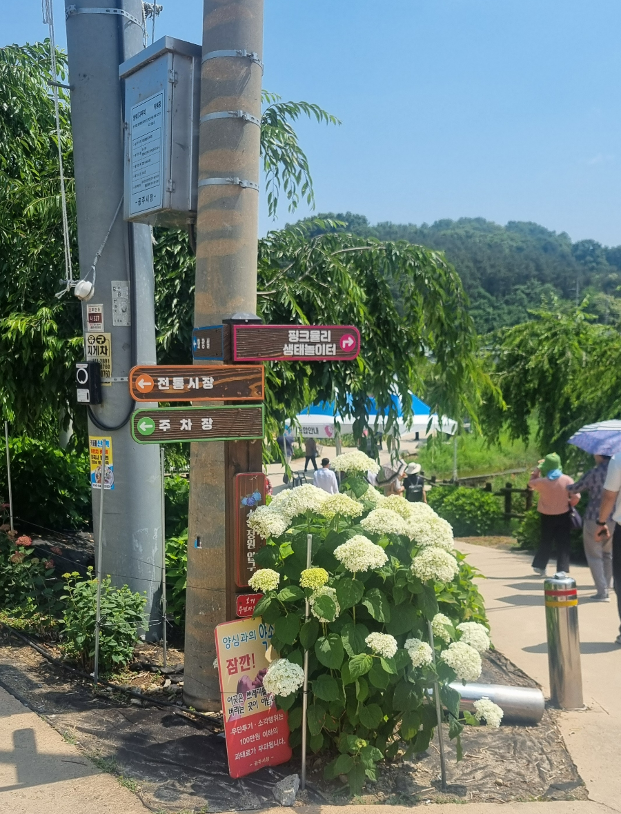 이렇게 길다면 길고 짧다면 짧은 유구천 주변에 조성된 수국정원을 둘러봤어요. 좀 규모가 작은 것이 아쉽네요. 하지만 이제 3회 차인 축제다 보니 아직은 미흡해도 이해는 됩니다.