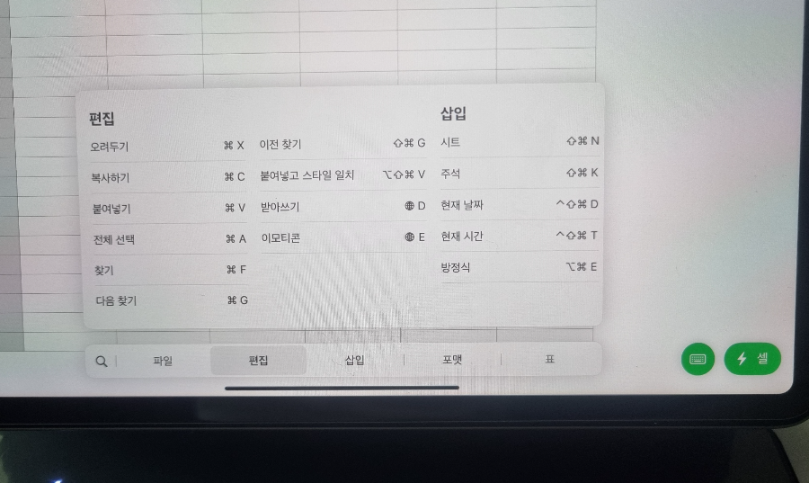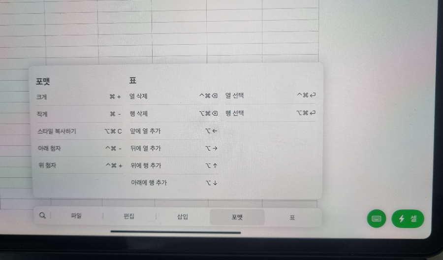 그리고 펑션기능들에 대해서는 'cmd' 버튼을 길게 누르면 아래와 같이 화면에 나옵니다.