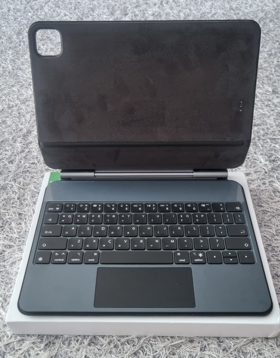 실물은 제법 애플 정품과 유사해 보입니다. 패드가 닿는 상판도 벨벳느낌의 부드러운 천이라 패드가 흠집이 나거나 하진 않아 보여요.