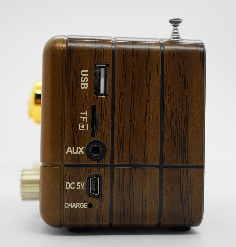 3. 오른쪽 측면에 연결부가 있습니다. USB 포트, TF 카드 슬롯, AUX 단자, 구형 5핀 충전 단자 이렇게 있습니다.