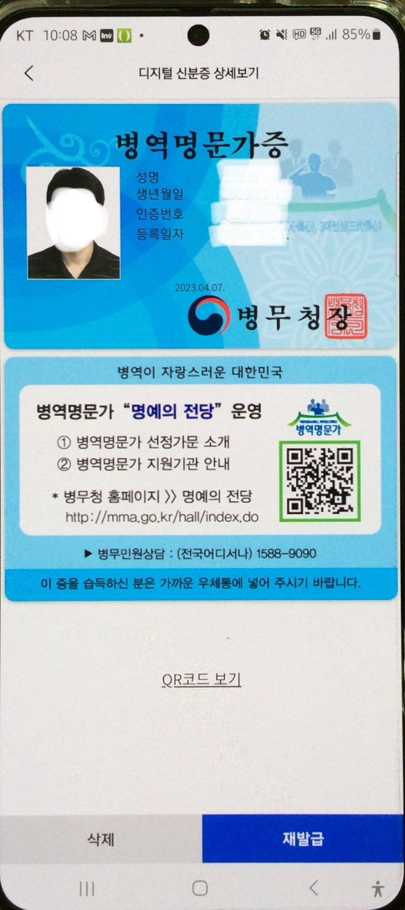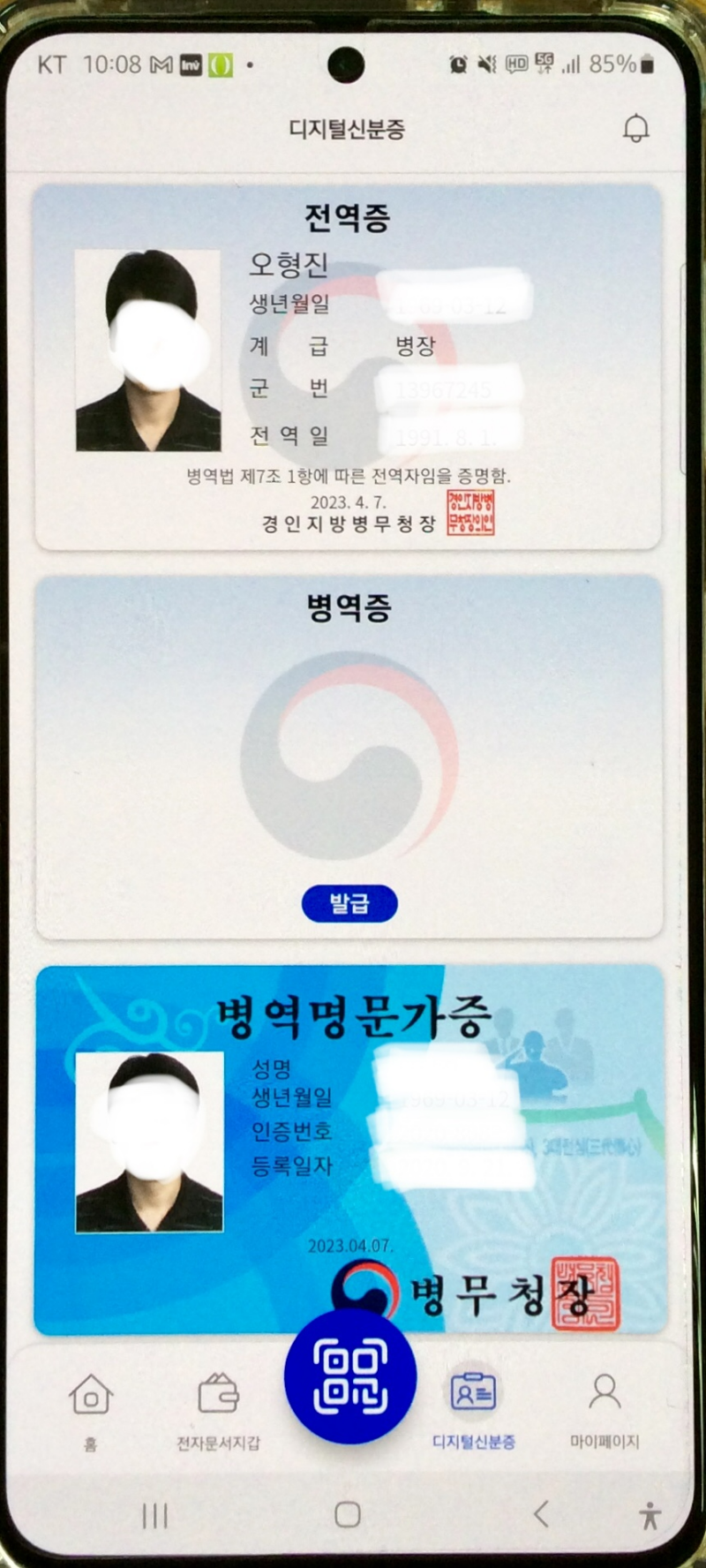 또 최근 기존에 운영하던 'e-병무지갑'에도 병역명문가증이 등록이 됩니다. 병역명문가증은 플라스틱카드에 인쇄되어 시간이 지남에 따라 사진등이 지워지는 문제가 있습니다. 여기 e-병문지갑에 넣어두면 그럴 일이 없겠죠.