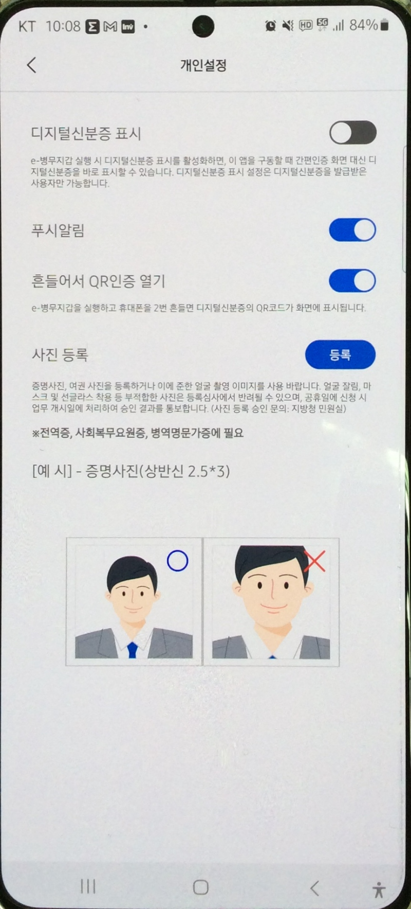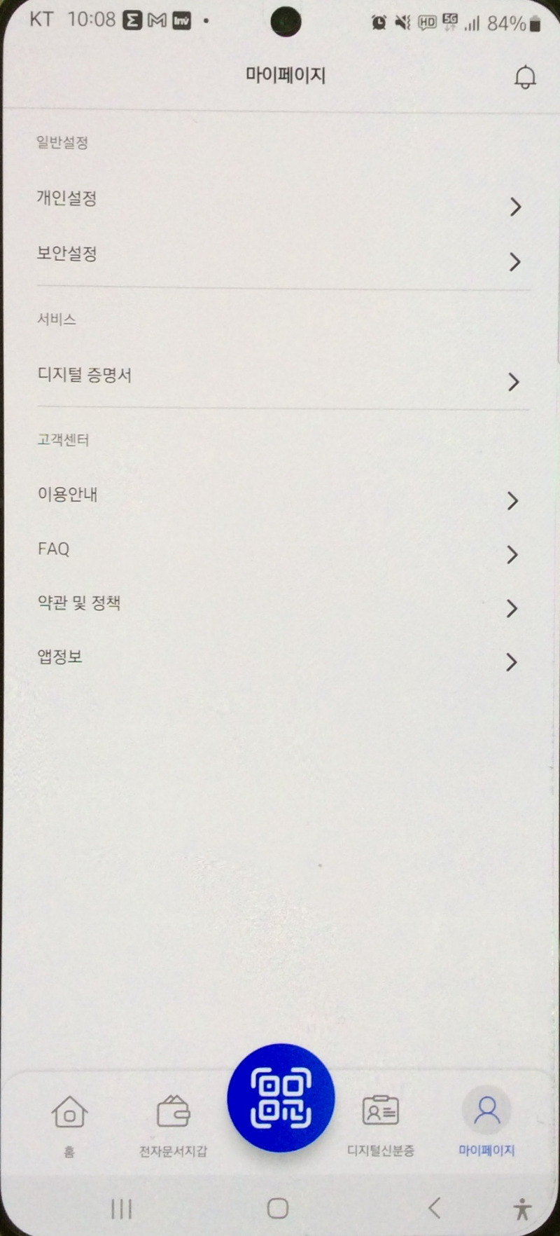 사진등록 후 초기화면의 하단 디지털신분증을 눌러 들어갑니다.