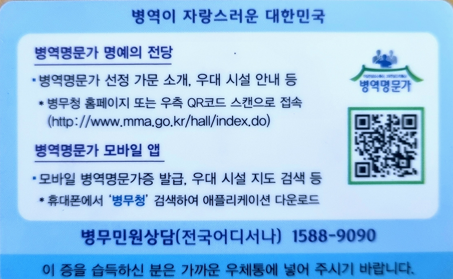 현재 많은 분들이 3대 병역명문가를 신청하셔서 4대 병역명문가를 새로 만든다는 소식도 있네요. 만약 4대 병역명문가가 생긴다면 국가유공자 수준의 혜택을 주었으면 합니다.
