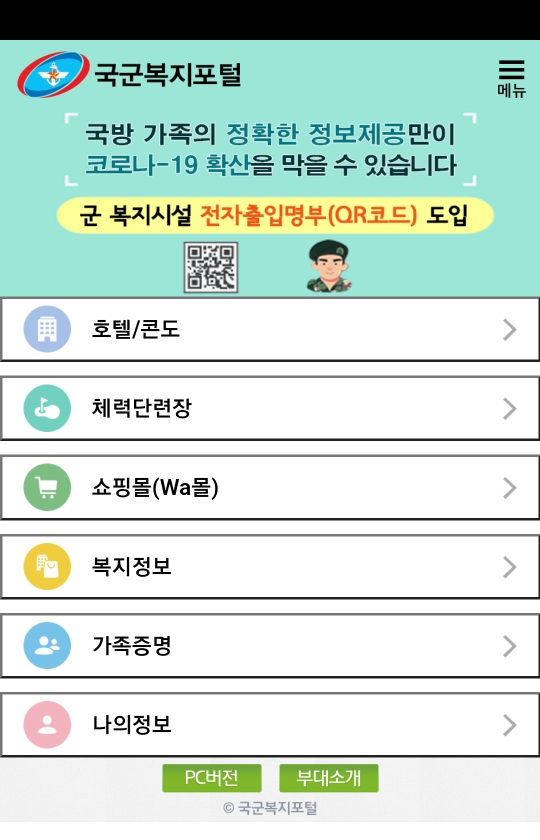 병역명문가 본인도 늘 증을 지참하기 번거롭기도 합니다. 그럴 때는 '국군복지포털앱'을 이용하세요. 앱은 이렇습니다.