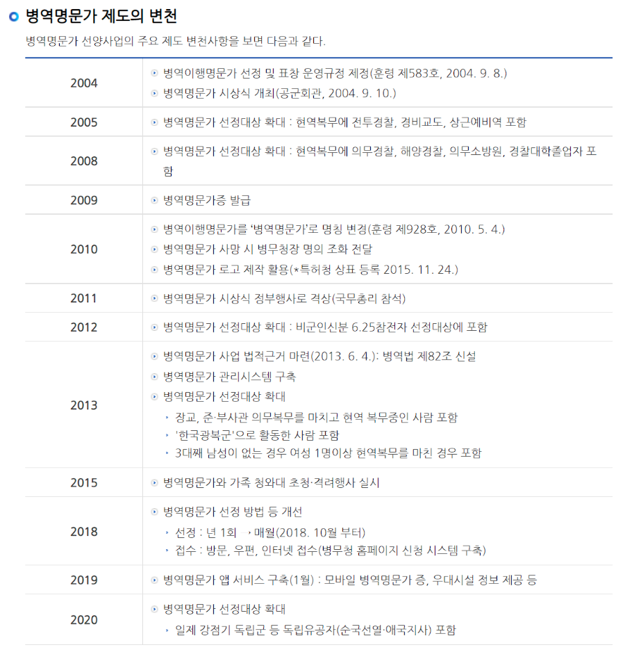 병역명문가 신청에 대한 자세한 사항은 아래에 링크 걸어 둡니다. 해당이 되신다면 신청이 크게 어렵지 않으니 해보시기 바랍니다.