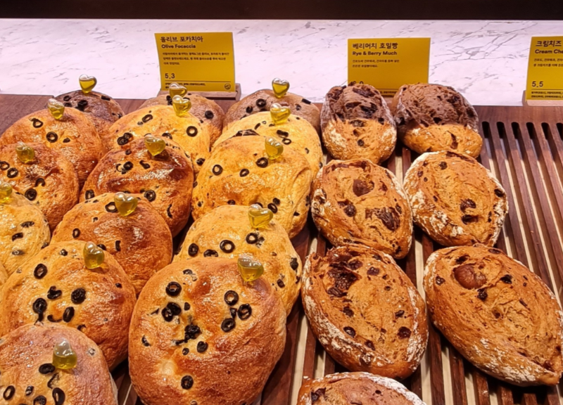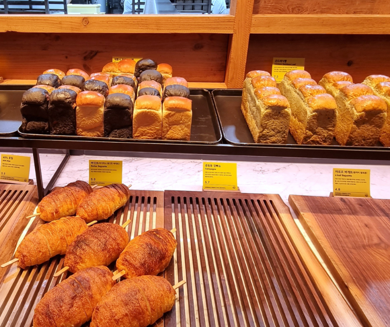 1층 빵 매대에서 빵들을 구매 후