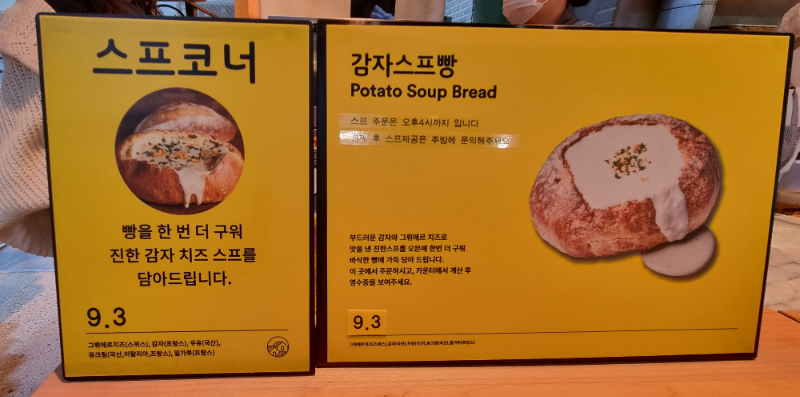 여기 감자스프빵 주문 방식이