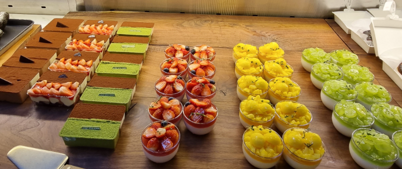 망고, 레몬, 커피 맛 케이크입니다.