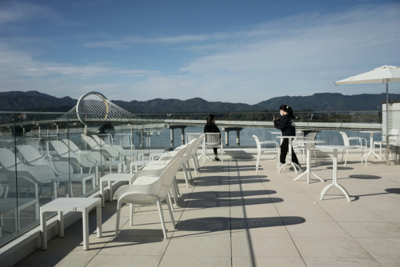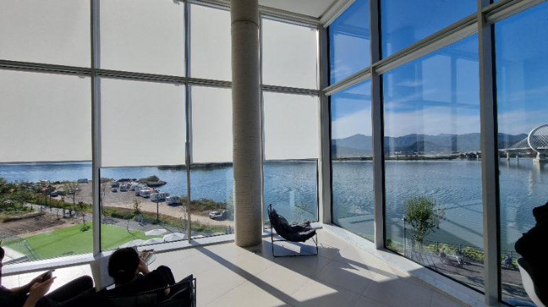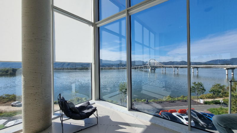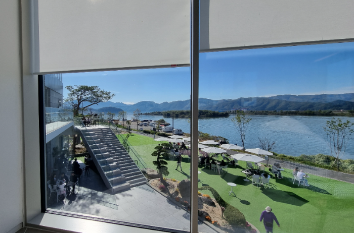 하지만 처음에 설명드린 대로 이곳은 뷰에 좀 더 신경을 썼네요. 건물이 어느 층이던 의암호 뷰를 볼 수 있는 구조로 지어졌어요. 각 층에서 볼 때마다 전망이 약간씩 달라집니다.