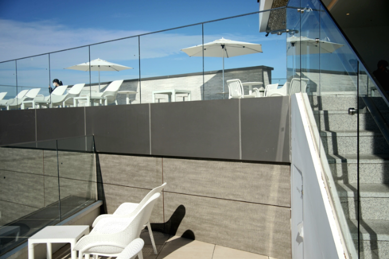 2층은 커다란 통유리로 되어 있습니다. 야외에서 2층으로 올라가는 계단이 있고 그래서 2층엔 테라스가 있어요. 아래 사진처럼요.