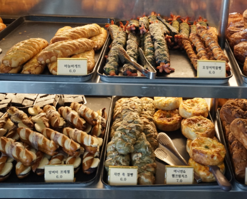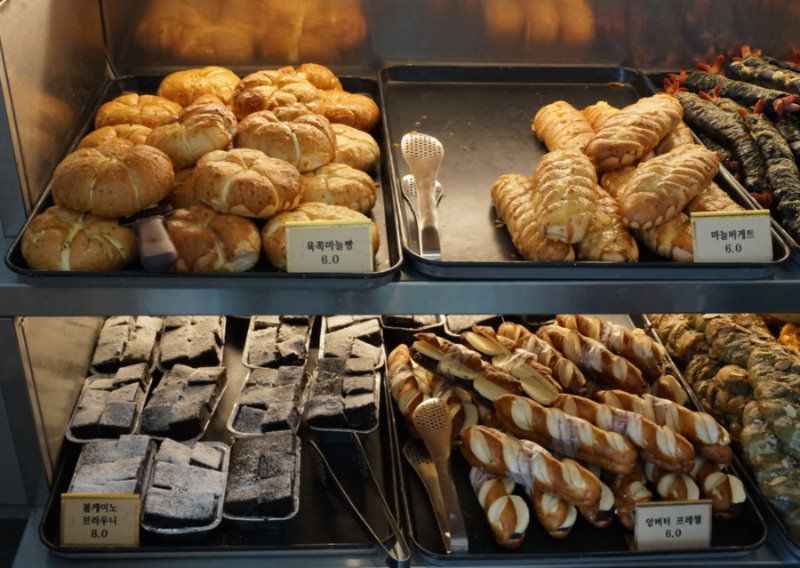 보통 대형 카페들이 베이커리 카페를 표방하여 직접 빵을 만들어 내놓는 것에 비해, 이곳은 빵 종류가 그리 많지 않네요. 아마도 빵을 납품받아 판매하는 듯합니다. 종류도 평범한 편이고요. 이곳의 빵은 커피와 티 하고 함께 즐기는 정도의 판매로 보입니다.