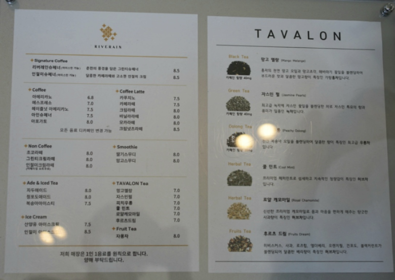 타발론이라는 티도 있는데 이것에 대한 설명이 메뉴판에 별도로 있습니다. 저는 딸기 스무디를 먹었는데 근래 먹은 것 중에서는 상급에 들 정도로 맛이 있었어요.