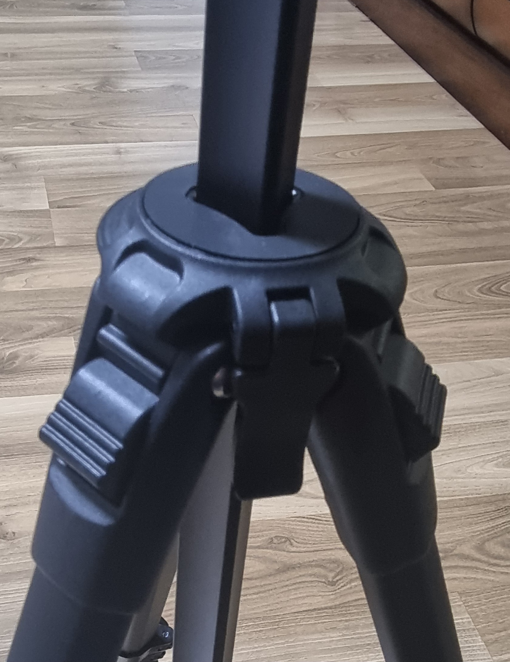 다리를 펴고 높이 조절은 삼각대 끝에 위아래 움직이는 레버를 올리고 조절하고 레버를 내려서 고정합니다. 레버를 잠그면 위치를 잘 지탱합니다.