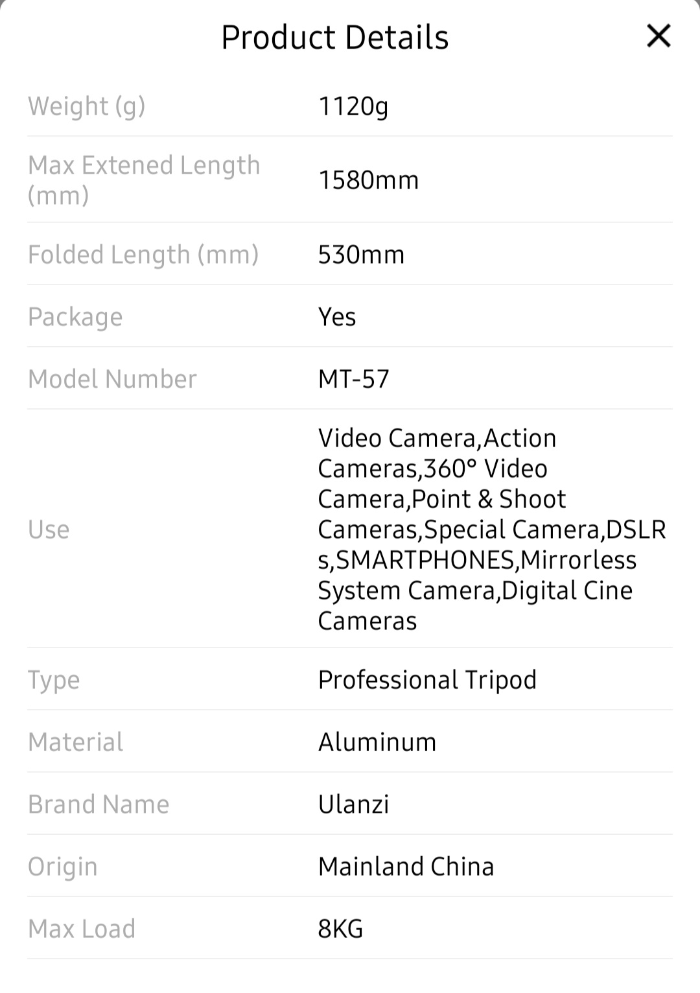 알리익스프레스에서 구입한 '울란지 옴브라'삼각대(Ulanzi Ombra)입니다.