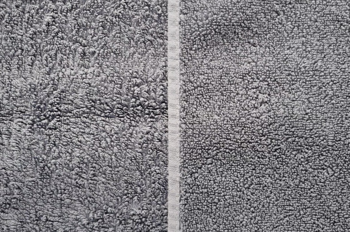 왼쪽이 자연 건조, 오른쪽이 건조기 건조한 수건인데요 수건 올이 확실히 가지런하고 훨씬 부드럽네요. 수건이 가장 큰 변화가 있어 보입니다.