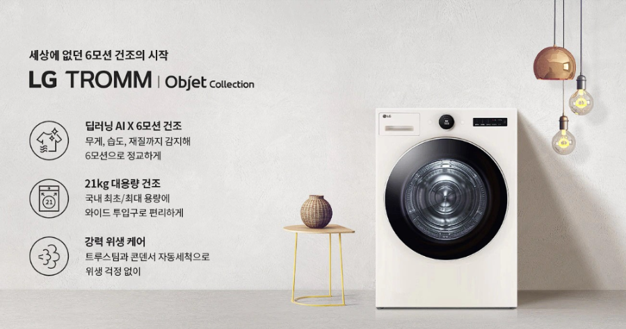 포인트는 6 모션 건조, 21kg 대용량, 트루스팀 3가지라고 합니다. 뭐 광고는 광고죠.