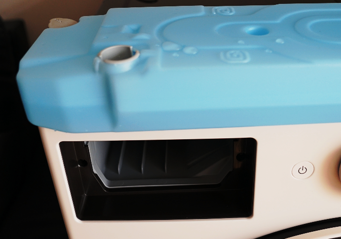 21kg 대용량이라서인지 빨래를 넣어도 통이 여유롭네요. 건조기 구입 시 샘플로 준 건조기용 유연제 한 장 넣어줍니다.