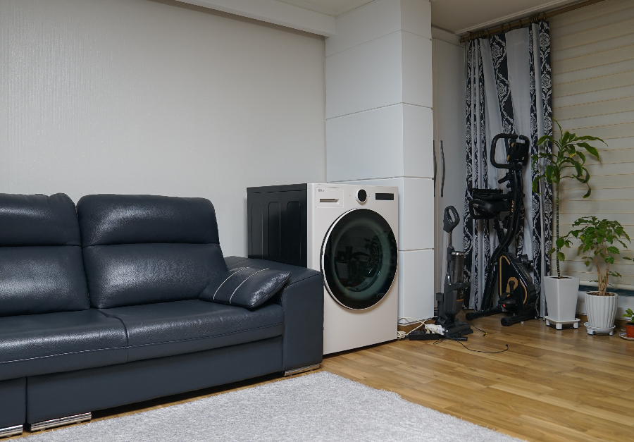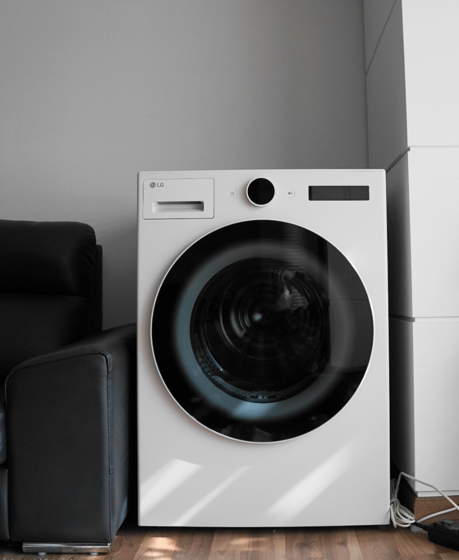 약 2년 전에 산 실버톤의 세탁기와 색상을 맞춰 건조기를 사려고 했는데, 거실에 설치를 고려하니 거실과는 너무 안 어울려서 솔리드 색상인 오브제를 선택했어요.