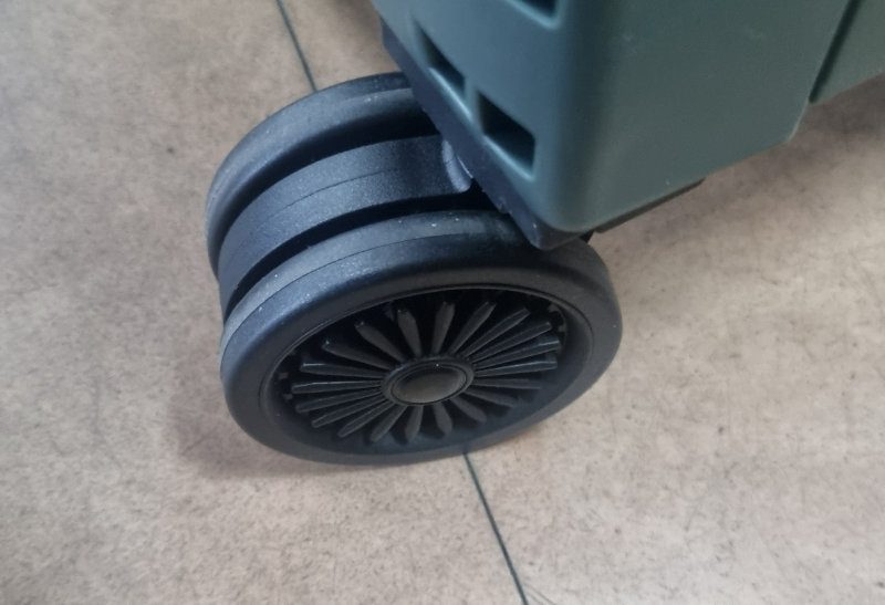 만듦새가 튼튼합니다. 무거운 물건을 넣어도 휘청하지 않고 잘 버팁니다. 바퀴는 캐리어의 크 바퀴와 같아서 소음 없이 잘 구릅니다. 아주 편하게요.