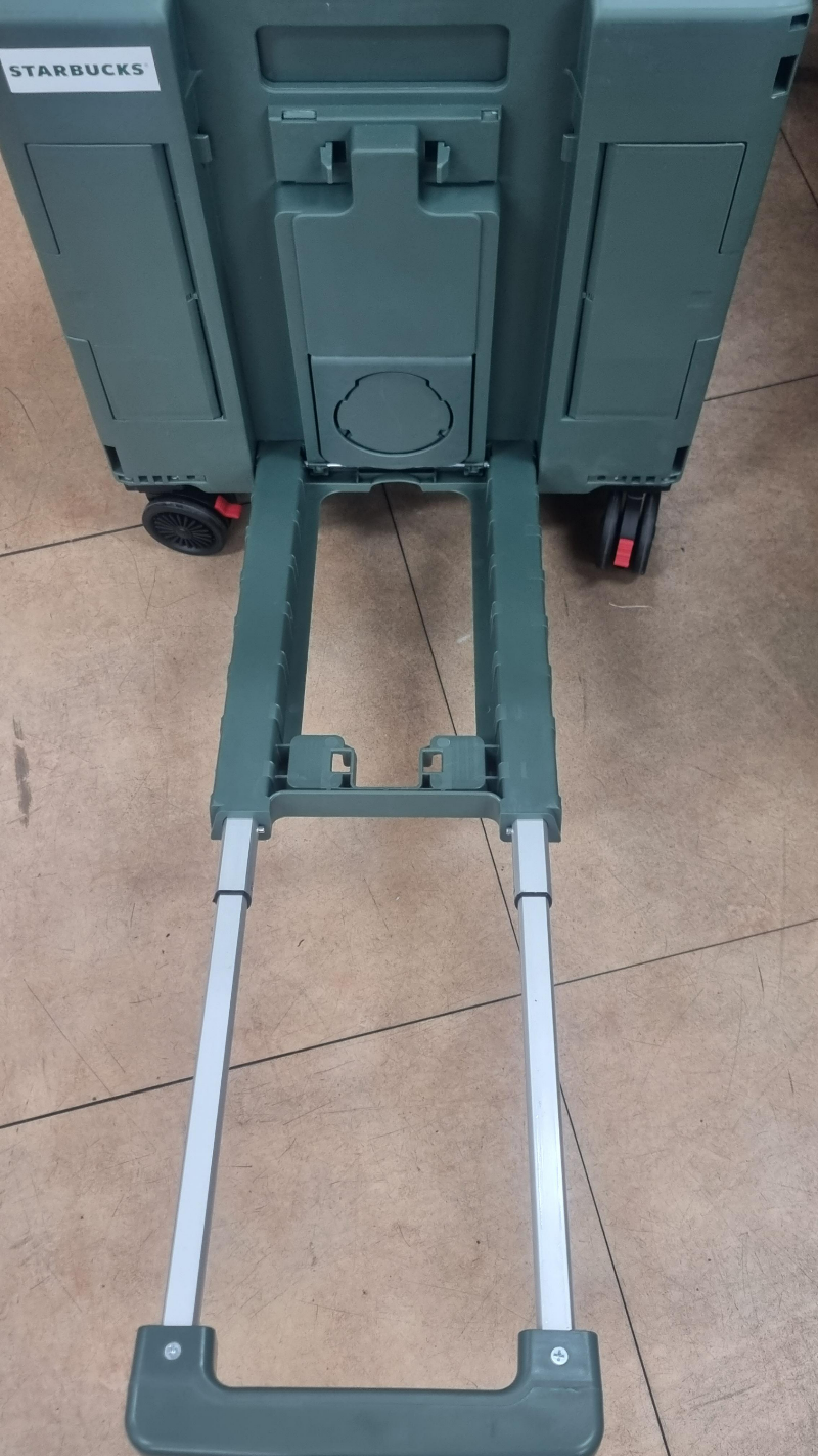 손잡이는 여타 쇼핑카트처럼 위로 길이가 늘어납니다. 또한 손잡이가 일직선 위로만 올라오면 4바퀴 의미가 크게 없었겠지만, 아래 사진처럼 손잡이가 본체에서 연장되게 분리됩니다. 그럼 손수레처럼 끌 수가 있어 이동에 편하네요.