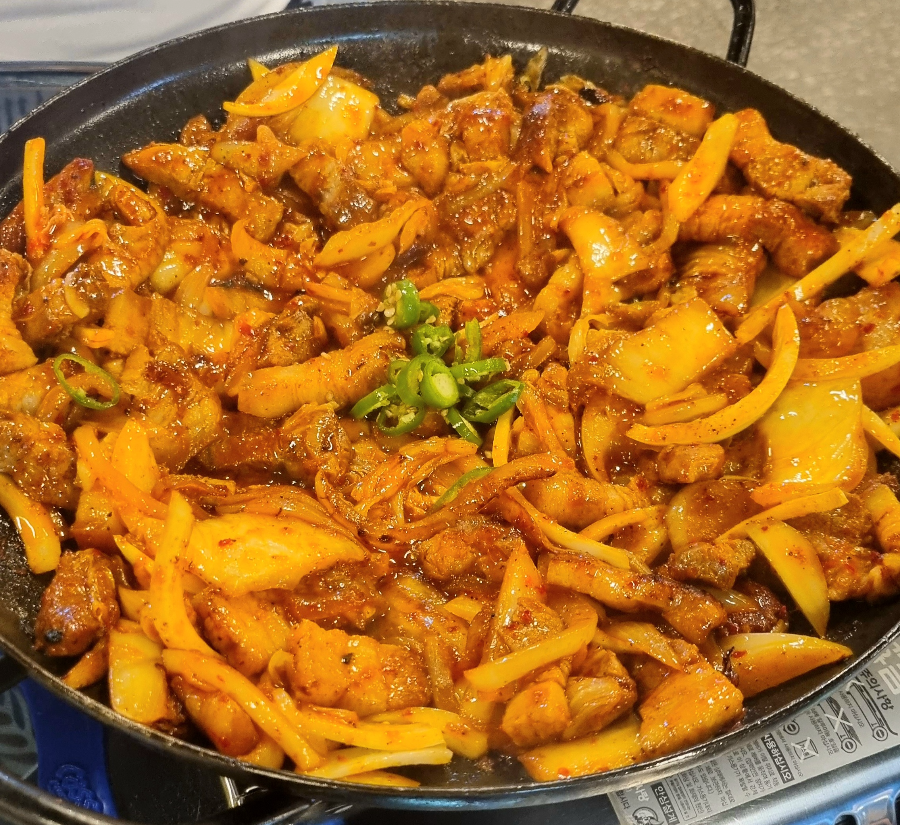 사진상으로는 붉게나와 다 그게 그거 같지만 돼지 삼겹살과 양파, 김치가 어울려 나오는데, 주방에서 조리되어 나와 바로 먹으면 됩니다.
