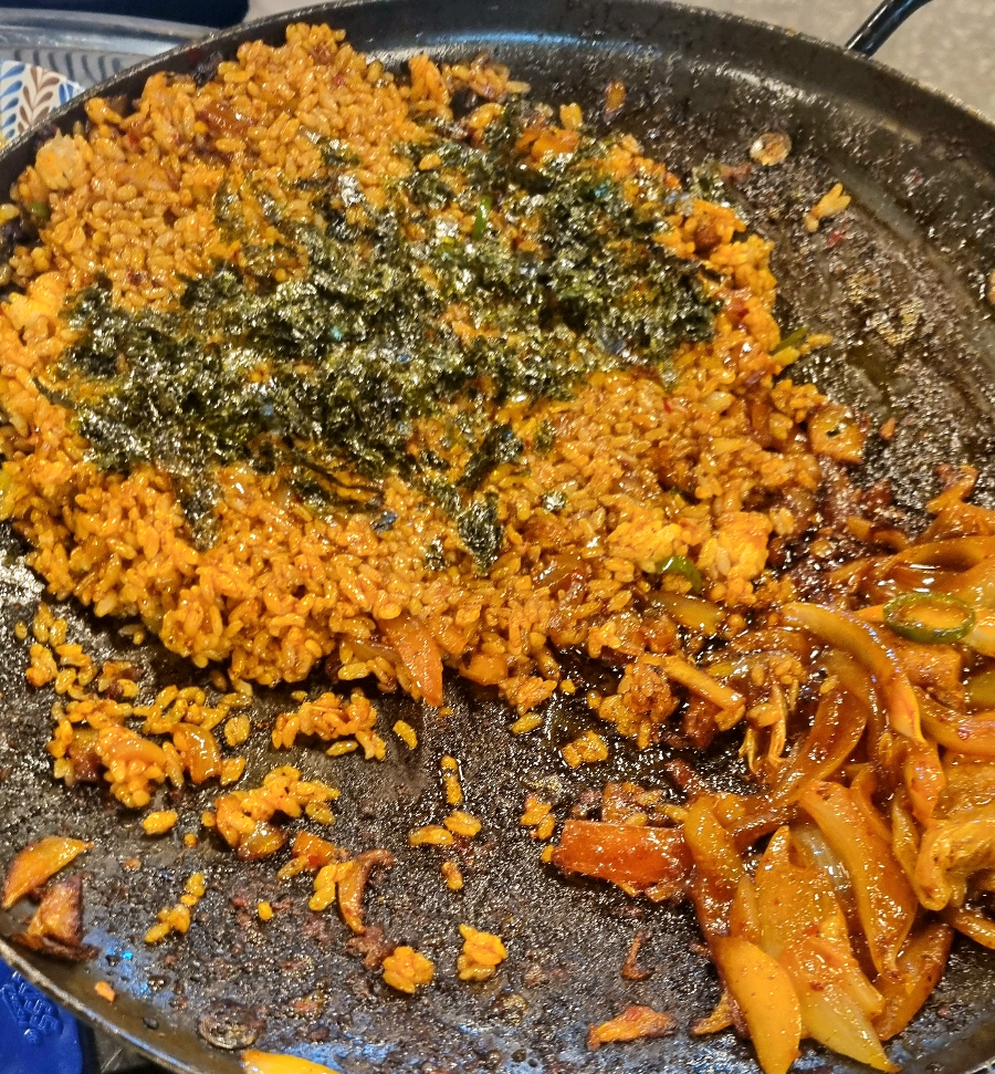 먹던 팬을 가져가서 그것에 밥을 볶아주는데 역시 조리해서 나옵니다. 삼겹살의 마무리는 볶음밥, 역시 맛은 후회없죠.