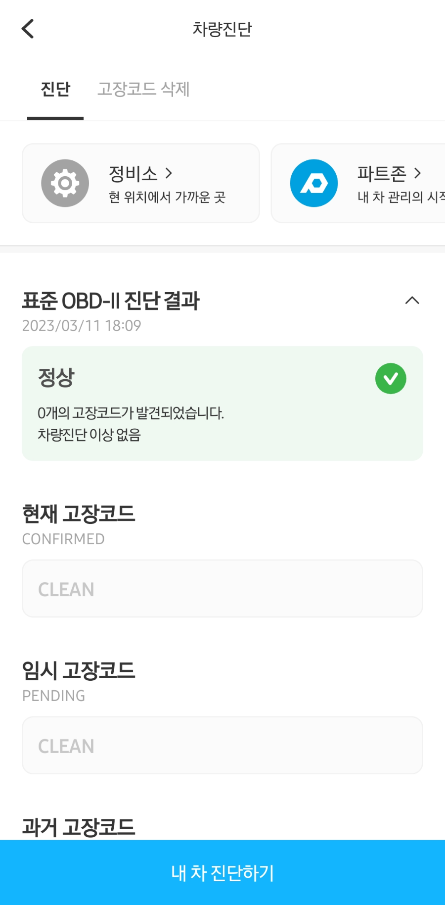 제차의 에러메시지를 리셋한 후에 측정이다 보니 정상이라고 나옵니다. 원래 정상이라면 당연하게 정상으로 뜰거고요.