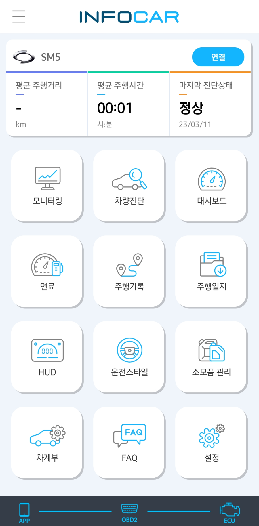 여러 메뉴가 있지만 인포카 구매목적이 차량의 사전점검이기에 '차량점검'만 이용할 듯합니다.