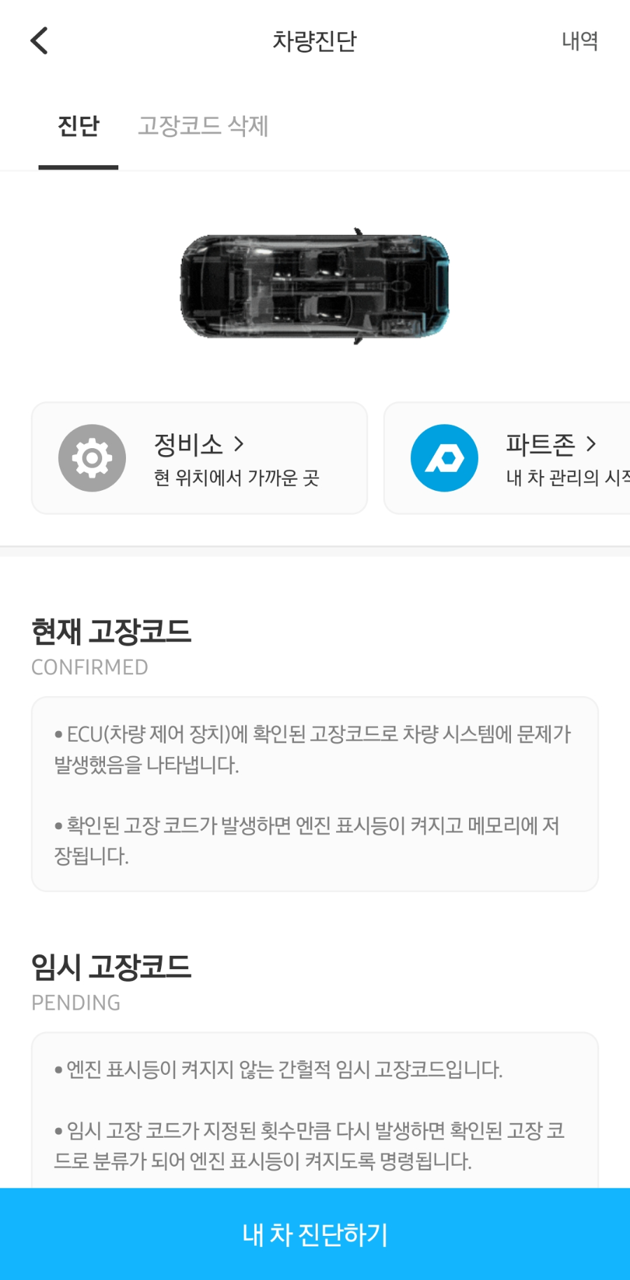 만약 점검 후 고장코드가 뜬다면 메뉴의 거장코드 삭제한 후 일정주행 후에 다시 진단해서도 같은 결과면 정말 문제가 있을 확률이 매우 높겠죠 그땐 정비소를 당연히 가야 하겠죠.