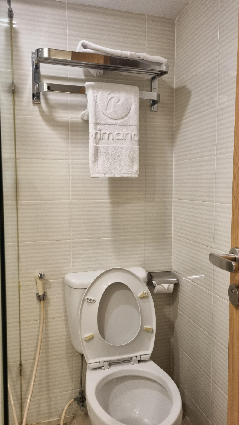 화장실은 제법 커요 방사이즈에 비해서는요. 동남아 화장실에서 볼 수 있는 호스비데 있습니다.