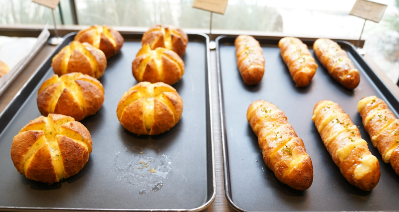 빵과 케이크류의 모양이 제법 특색이 있어요 개개의 빵들에 재료 간의 색상 조합에도 무척 신경 쓴 듯합니다.