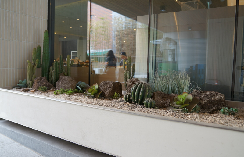 창문틀에 있는 선인장 화단을 지나면 카페 출입문이 나옵니다. 겨울도 따뜻한 부산이라서 그런지 선인장으로 단장했네요.