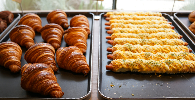 빵들은 제법 다양하게, 먹음직스럽게 진열되어 있어요