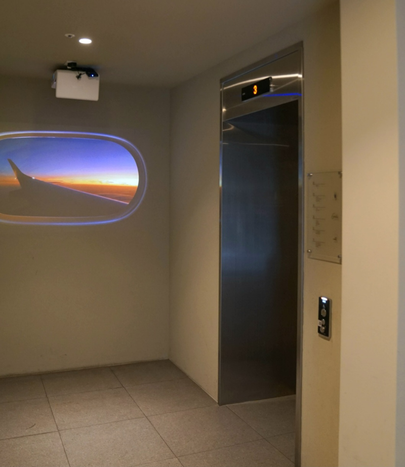 엘리베이터는 출입구 왼쪽으로 돌면 있습니다.