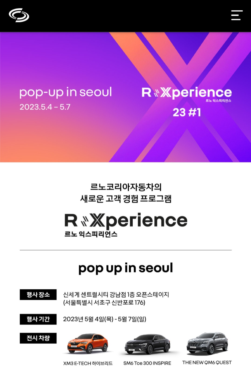 시승식차에 신차는 없었지만 타사들과 다른 방식의(?) 하이브리드차인 XM3 하이브리드가 시승차로 있어서 당당히 낚여주었습니다.