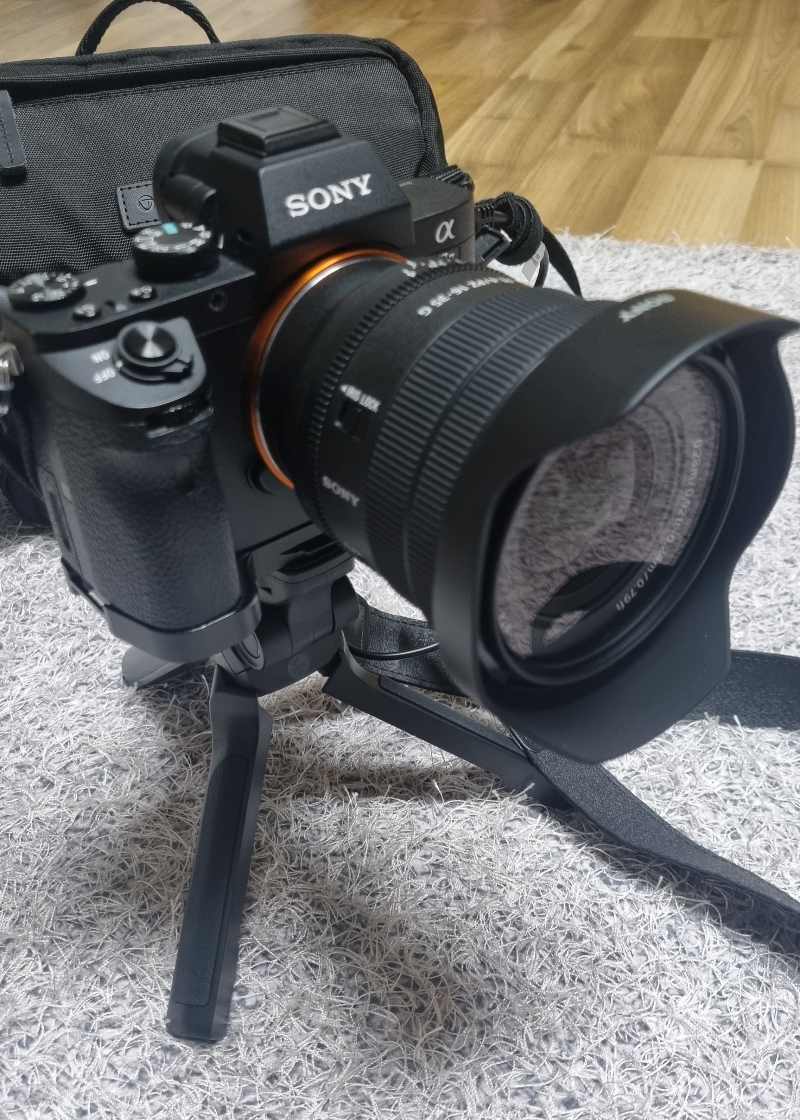 저질 체력을 고려 못하고 의욕만 앞선 구매 같습니다. 영상을 위해서는 더 가벼운 카메라, 렌즈로 해야만 가능할 듯해요. 소니 ZV 계열 카메라나 크롭바디 a시리즈와 PZ 1650 크롭렌즈 정도면 아주 편하게 들고 찍을 듯합니다.